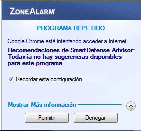 Dentro de la lista de acciones maliciosas que puede realizar una aplicación o virus, está la de modificar o “conectarse” con otra aplicación de nuestro sistema, con la intención de tomar el control de algún proceso o conexión de la PC, esto lo detecta ZoneAlarm y nos avisará, si pensamos que es algo que puede dañar el sistema, denegamos el acceso.